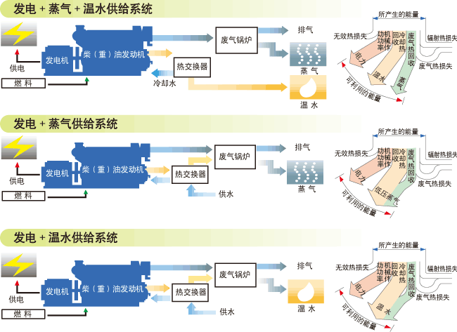 在柴油发动机的发电及废热供暖系统下,使用条件严苛、在船舶常用发动机领域中具有多年丰富使用业绩的发动机被转用于工业用途。它可不间断运转1年,但一年需要进行一次左右的维修保养。