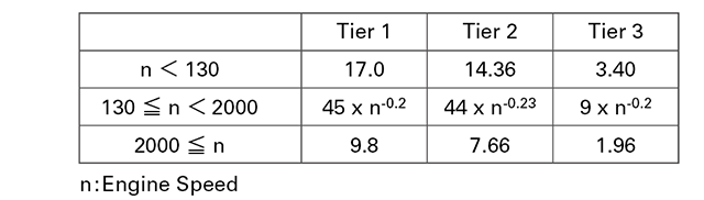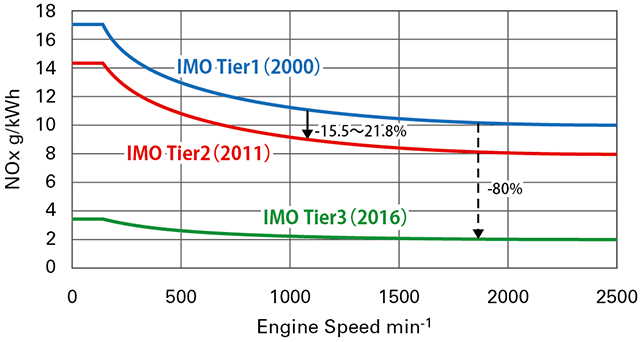 关于NOx排放的第一阶段规制,MARPOL公约附则Ⅵ【防止船舶造成空气污染规则】在2005年5月发行,规定外航船搭载的柴油机追溯到2000年1月为止适用,内航船从2005年5月开始适用实施。