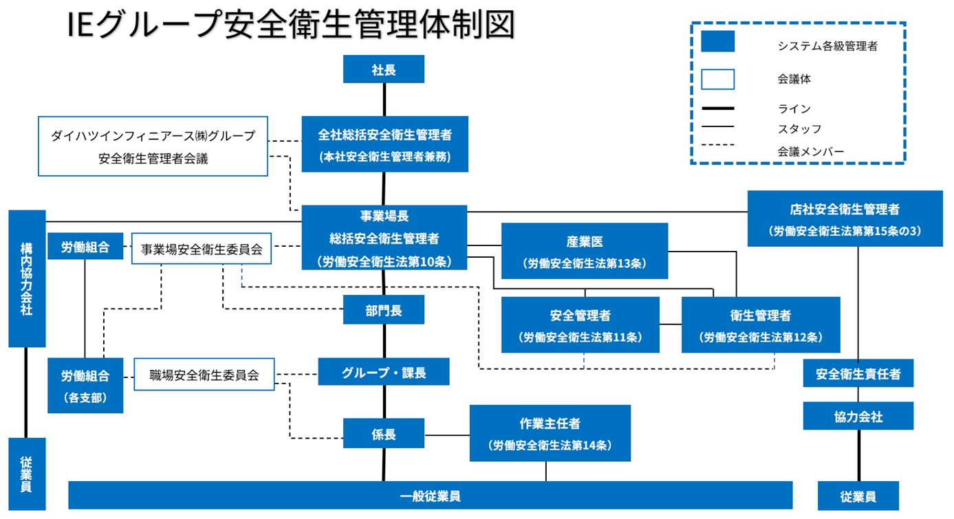 ダイハツインフィニアースグループは、従業員の安全と健康の確保は、企業基盤の基本でありもっとも重要な一つと考えています。