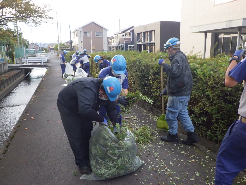 守山事業所では、毎週金曜日の夕方に2S活動を実施しています。各部署がチームに分かれ、その日の清掃場所を決め、工場内の清掃にとどまらず、近隣地域の美化に寄与しています。
