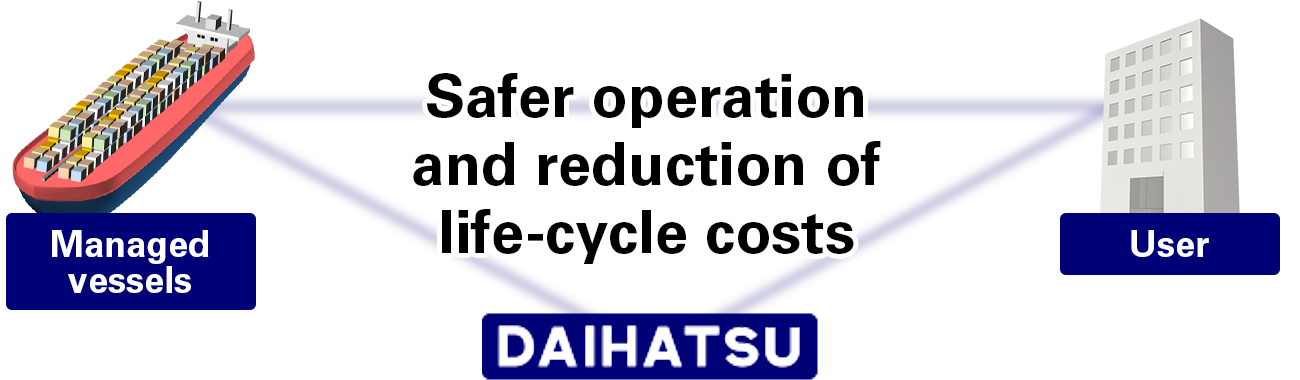 Building up our range of IoT-supported products and services the CMAXS LC-A integrates the management and monitoring of main engines, auxiliary engines and auxiliary devices in one, easy to use internet-based platform. And with trouble-shooting functions connected directly to Daihatsu you can be ensured of quick and relevant maintenance support.