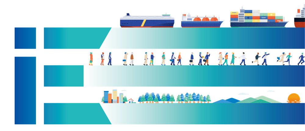 - We aim for harmony with the global environment, broaden our international outlook, and advance new business developments.