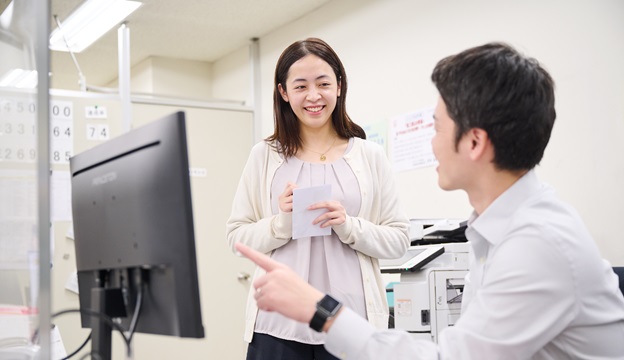 私のような文系出身者は、当社の事業に対してとっつきにくい印象を受けるかもしれませんが、サポート体制が整っているので安心してチャレンジしてください。一緒に働くことを楽しみにしています!